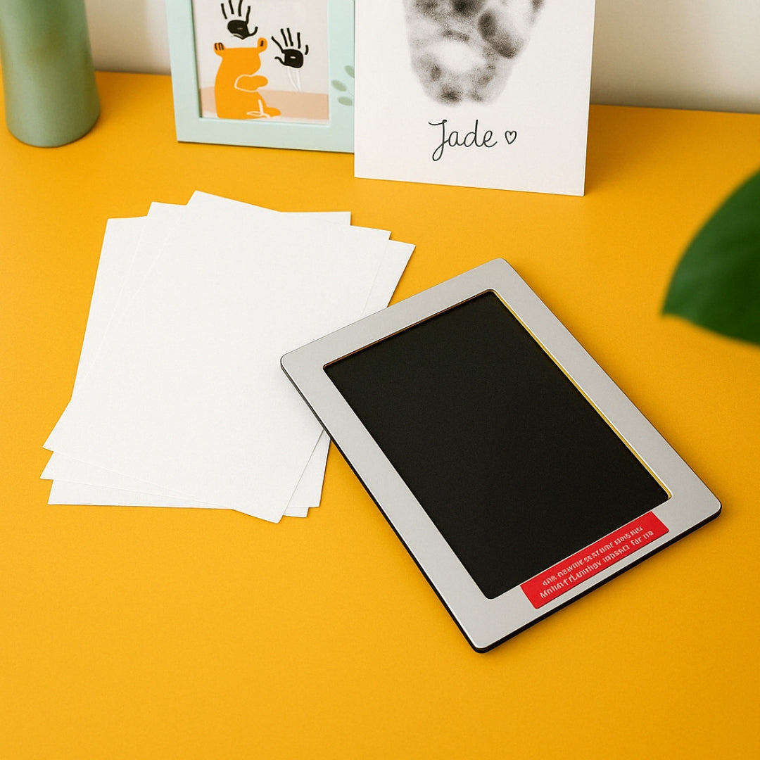 Les tout premiers mois de bébé passent en un éclair. Avec ce kit d’empreintes sans encre, vous capturez pour toujours l’adorable petitesse de ses mains ou de ses pieds, dans un geste à la fois tendre et artistique.